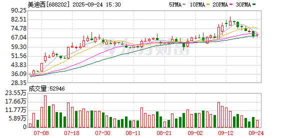 美迪西9月24日大宗交易平台出现一笔成交,成交量10.00万股,成交金额548.00万元,大宗交易成交价为54.80元,相对今日收盘价折价21.39%。该笔交易的买方营业部为中泰证券股份有限公司宁波分公司,卖方营业部为长城证券股份有限公司苏州东吴北路证券营业部。